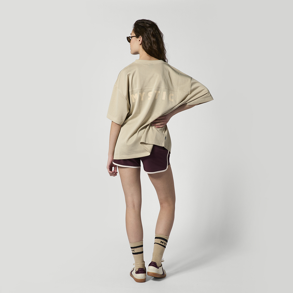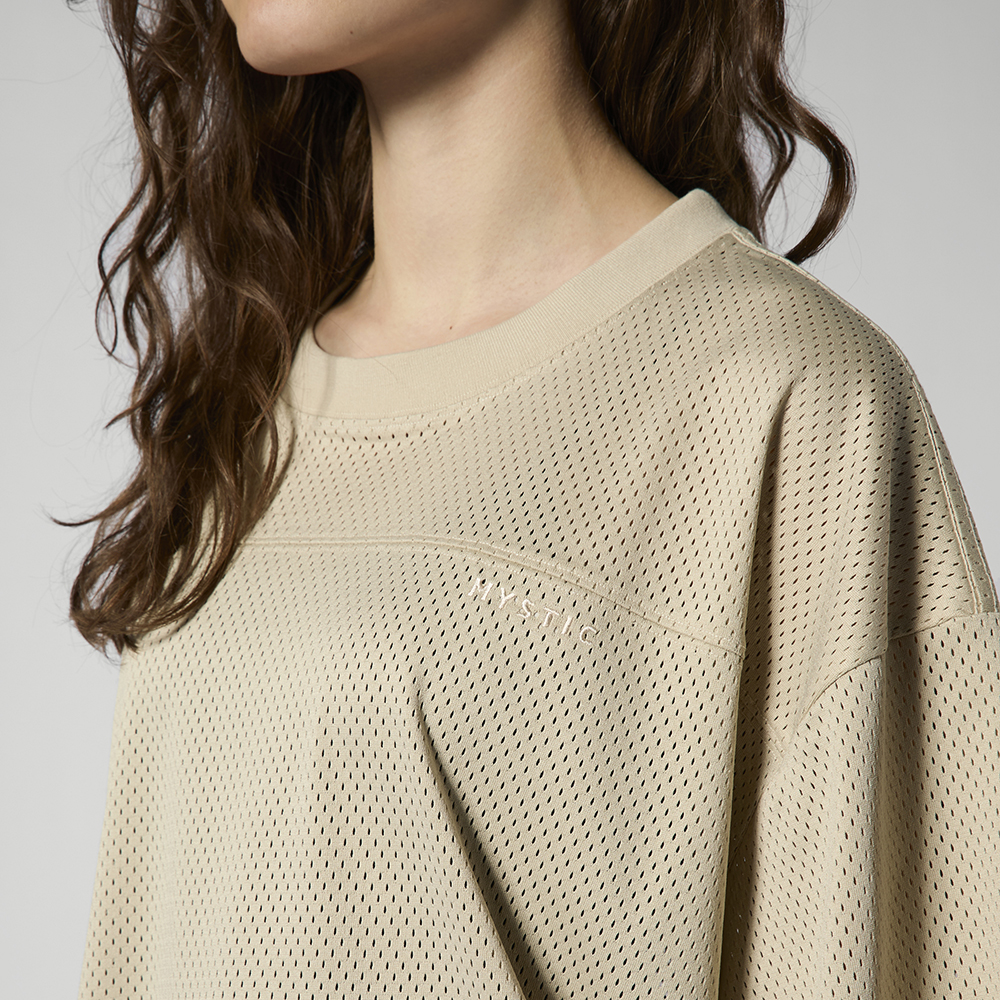 Relay T-Shirt Built on klassisch sports jersey design, the Relay Shirt brings a clean, oversized look in breathable mesh. Subtle Mystic branding across the back keeps it minimal und easy to wear on repeat. Material: 100 Recycled Polyester, Mesh Features: - Oversized fit - Mystic logo print at linke Brust - Mystic big logo print at back