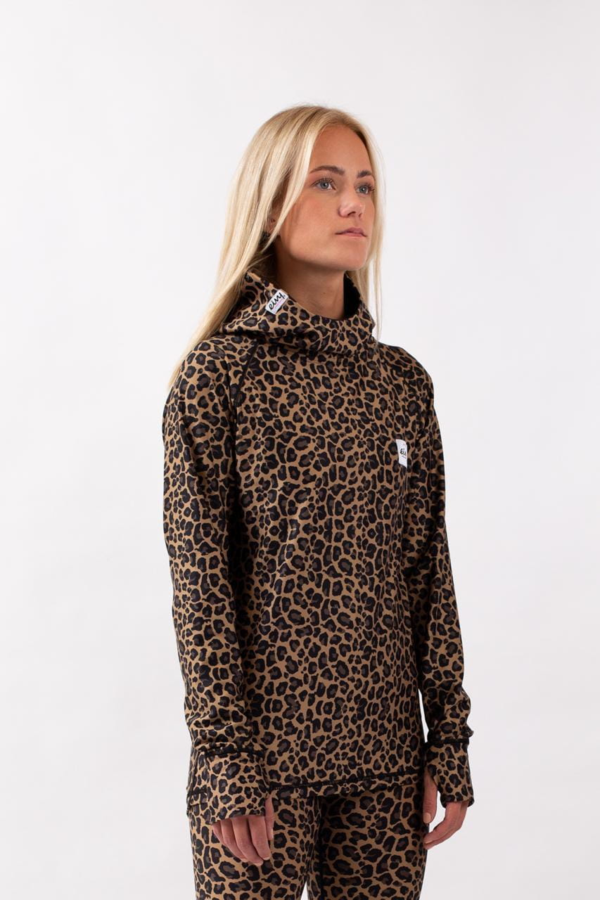 Base Layer-Top mit integrierter, mit Mikrofleece gefütterter Kapuze und hohem Kragen für zusätzlichen Schutz. Flatlock-Nähte sorgen für Komfort, Daumenschlaufen und eine verlängerte Rückenlänge für mehr Wärme. Der neue, detailreiche Forest-Landscape-Print mit organischen Formen, Blättern und Tieren in gedeckten Naturtönen erinnert an fantasievolle Waldlandschaften für alle, die Naturverbundenheit und Individualität stilvoll kombinieren möchten. Gefertigt aus dehnbarem, schnell trocknendem und feuchtigkeitsableitendem GRS®- und Oeko-Tex®-zertifiziertem, recyceltem Material mit UPF50+ Sonnenschutz und weicher, kuscheliger Innenseite. Verwende es auf und neben dem Berg, beim Après-Ski, im Fitnessstudio und bei all Deinen Abenteuern. Kombiniere es mit einer unserer Base Layer-Hosen, um Deinen eigenen Look zu kreieren. Entworfen in Åre, Schweden, von Snowboarderinnen, Skifahrerinnen und Reisenden.