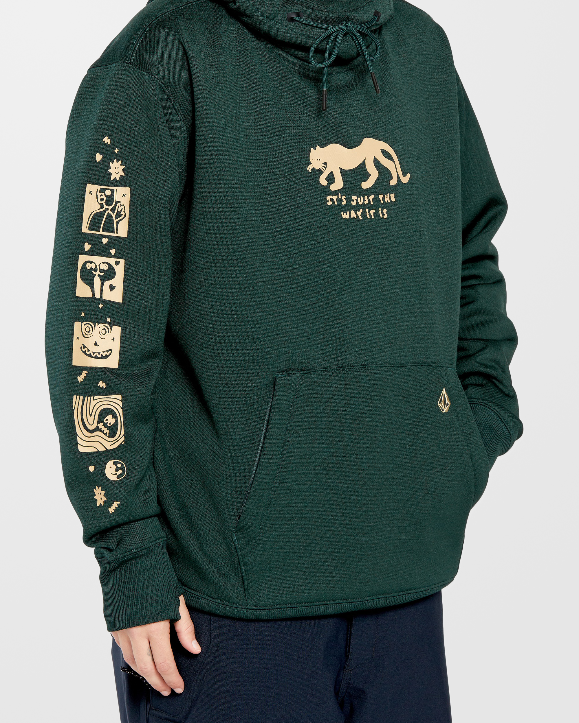 Mit dem Riding Hydro Pullover ist dein neuer Lieblings-Kapuzenpullover jetzt noch pistentauglicher. Der lässige aus wasserabweisendem Fleece für mehr Wärme und Wasserfestigkeit hat Reißverschlusstaschen, einen integrierten Nackenwärmer und ein Design. Der Hoodie mit der Warp Snow Grafik auf der Brust wurde in Zusammenarbeit mit Volcom-Fahrern entwickelt.